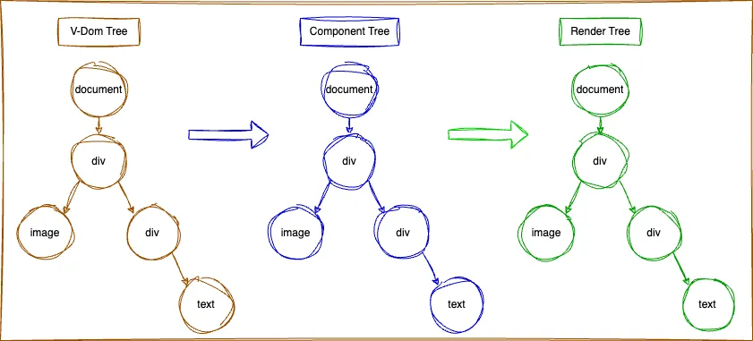 通过 _jr_ydby_new_node_instance 方法,遍历视图中所有节点及子节点,完成整个 V-Dom Tree 的创建export function _jr_ydby_new_node_instance(ctx_id, v_dom, current_t_node, parent_node, v_f_ctx, is_batchCreate, itemIndex) { var cur_env = _jr_ydby_node_parse_jscontext(ctx_id, v_f_ctx); let ctx = __jr_template__ctx[ctx_id]; var current_node = null; if (current_t_node.type === 'document') { // 创建根节点 current_node = new JUE_NODE(v_f_ctx, ctx_id, "", current_t_node); current_node.setAttr(cur_env, ctx) _jr_ydby_create_body(current_node); }else{ // 创建其他子节点 current_node = new JUE_NODE(v_f_ctx, ctx_id, parent_node.id, current_t_node); current_node.setAttr(cur_env, ctx); current_node.setStyle(cur_env, parent_node.style); current_node.setValue(cur_env, v_f_ctx); current_node.setEvent(cur_env); // 组装数据,生成 _jr_ydby_v_node对象 parent_node.appendChild(current_node, v_dom); // 添加节点 _jr_ydby_add_element(current_node, current_node.node_index); } // 循环创建当前节点下的子节点 if (current_t_node.sub_nodes) { let v_if_else_parse_result = []; for (let i = 0; i < current_t_node.sub_nodes.length; i++) { v_f_ctx = Object.assign({}, v_f_ctx); let sub_t_node = current_t_node.sub_nodes[i]; let att = sub_t_node.attr; let v_for_value = att['v-for']; …… // 递归创建子节点 _jr_ydby_new_node_instance(ctx_id, v_dom, sub_t_node, current_node, v_f_ctx, is_batchCreate); } } return current_node;}