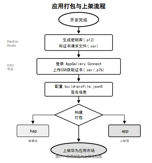 应用发布前需要配置签名证书。在DevEco Studio中选择Build > Generate Key and CSR,创建密钥库文件(.p12)和证书请求文件(.csr)。然后登录AppGallery Connect平台,上传CSR文件获取证书文件(.cer)和Profile文件(.p7b)。