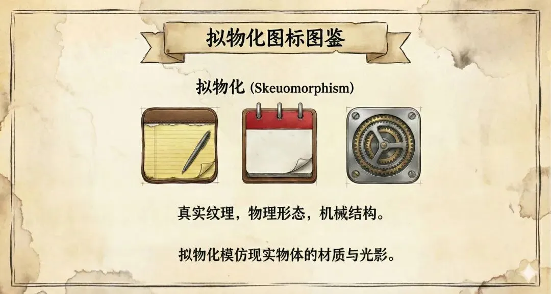那时候的 iOS 就像一个装满精美小玩具的百宝箱。每一个图标都在疯狂暗示你:“我很好吃,我很真实,快来点我。” 这种设计成功地把几亿人类带进了移动互联网时代。