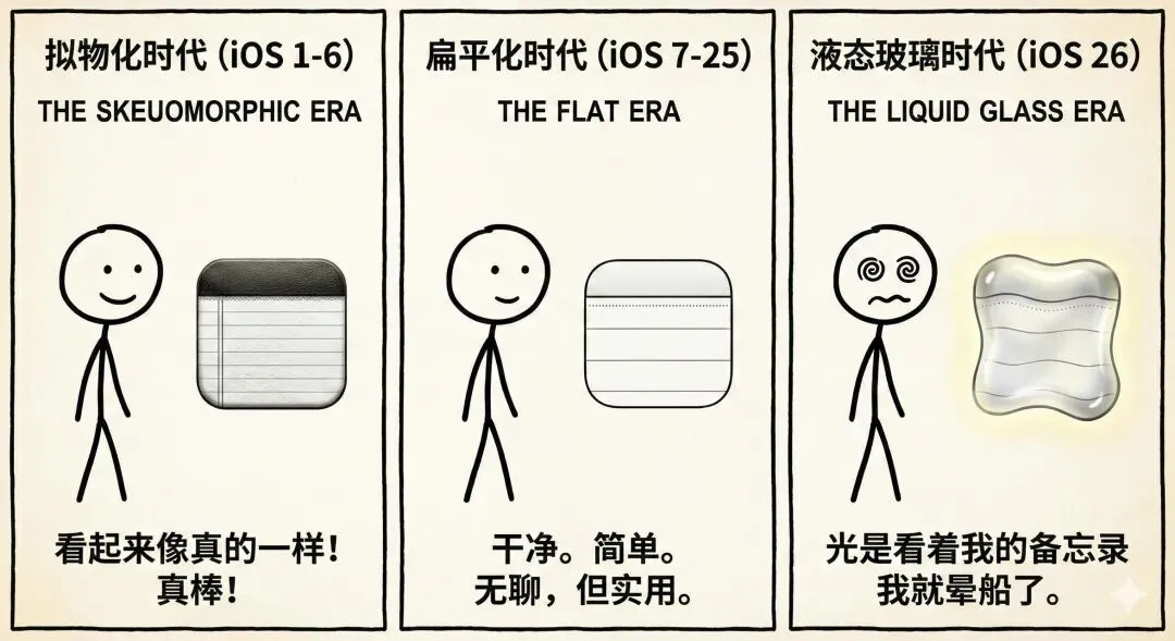 王小波曾说,人的一切痛苦,本质上都是对自己无能的愤怒。而我们对 iOS 26 的痛苦,则是对“过度设计”的无力感。