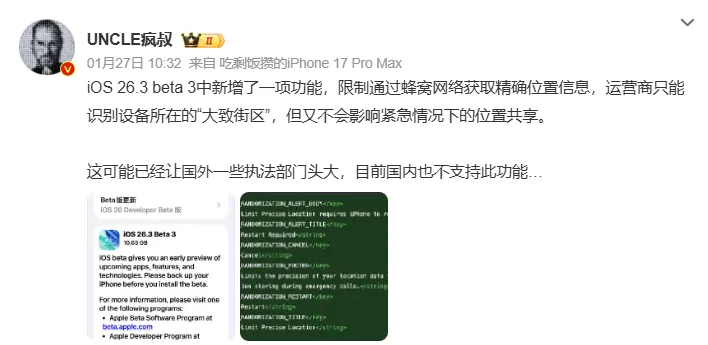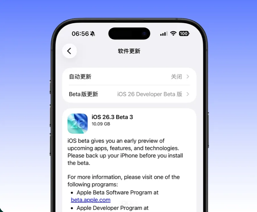 这两天刷着旧手机,夜里推送的 iOS 26.3 Beta 3到位了,先别急着动手,点开更新看一眼,数码店里摸过机器,现在整天看后台数据,大家碰到的事心里都有数,视频通话五分钟,屏幕亮着,电池往下掉,壳子烫手,26.2上这事出现得多,一拨拨留言说用不住,都怀疑自己手机规格不够,其实不是那个方向,系统和软件没对上口,碰到一起就不顺。