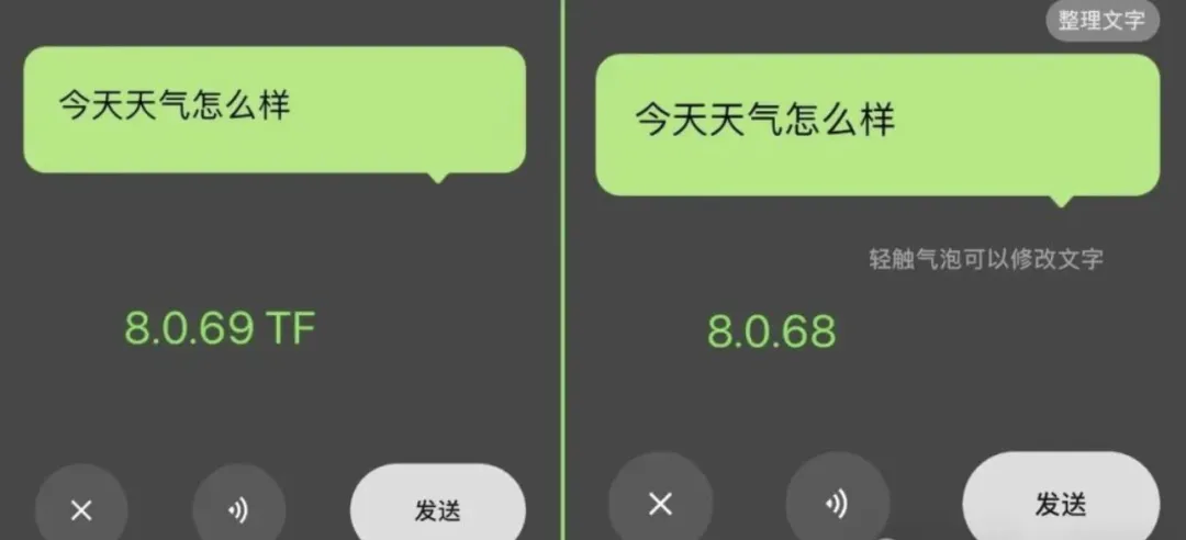 升级到8.0.69版本后会取消了语音转文字后的“轻触气泡可以修改文字”"整理文字"按钮,现在转文字后只有绿色气泡,无法再手动调整文字顺序。