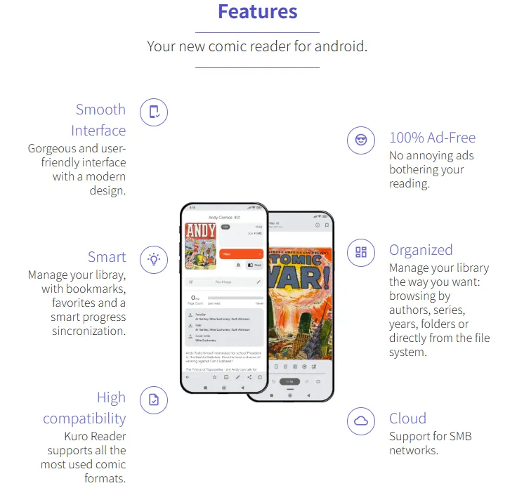 Kuro Reader 是一款以「本地漫画阅读体验」为核心的安卓漫画阅读器。