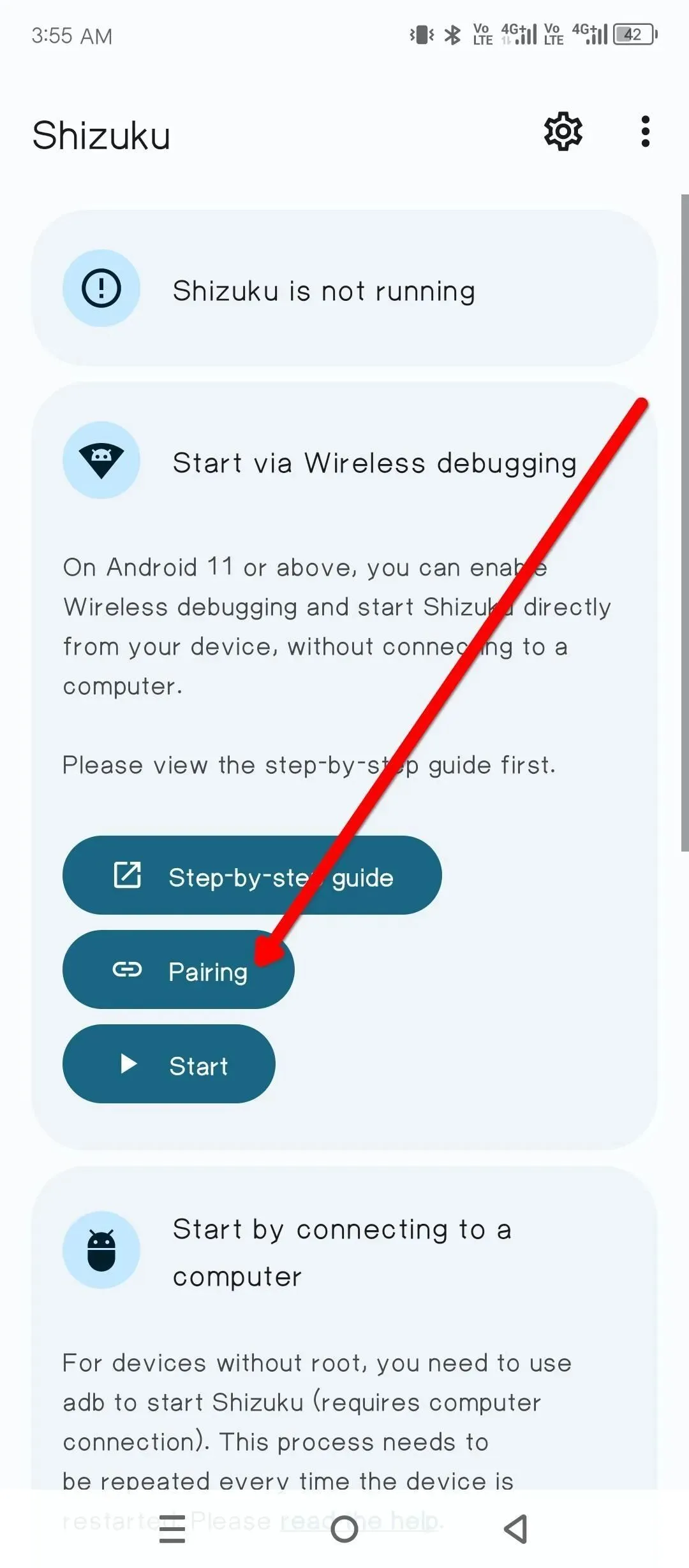 接下来从 Play 商店安装 Shizuku。装好后打开它。