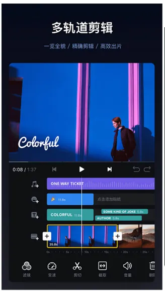 多轨道编辑:视频、音频、文字、贴纸分开调,想怎么改就怎么改