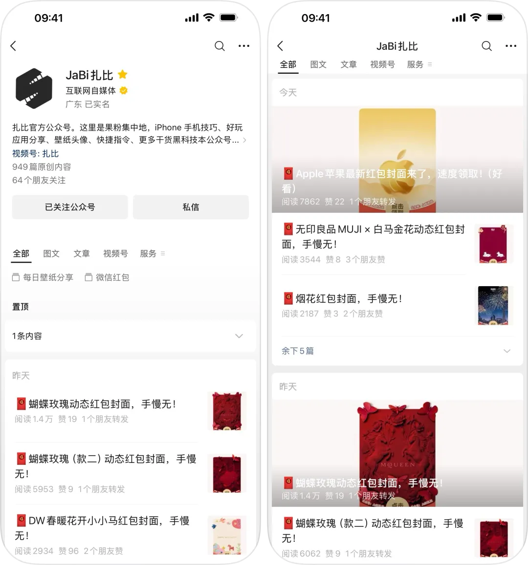 另外,我们进入公众号的主页,可以看到公众号头条的文章又变成了大封面的样式,而不是1:1的小正方形封面。如图: