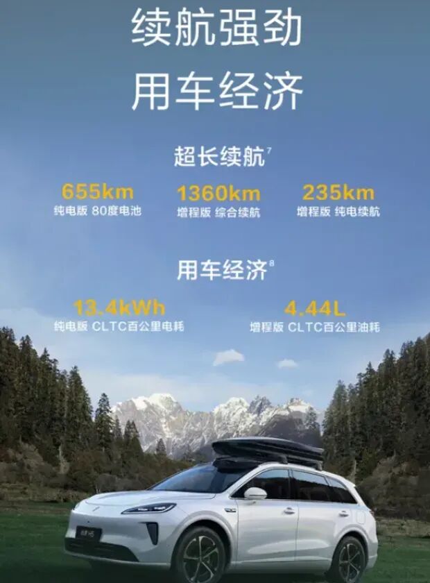 车辆提供纯电、增程两种动力版本,精准匹配不同出行需求。纯电版搭载80kWh宁德时代电池,CLTC续航最高可达655km,市区通勤工况下可实现一周一充;高速工况电耗稳定在13.4kWh/100km,续航虚标率低,表现可靠。支持快充模式,30分钟可完成30%-80%补能,满足长途出行补能需求。