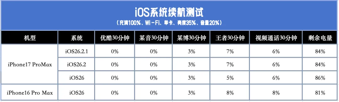 iOS 26.2.1 正式版本次更新提供了对第二代 AirTag 的支持以及错误修复。测试环境:相同亮度、相同音量、无线网络、单卡、充满100%电量