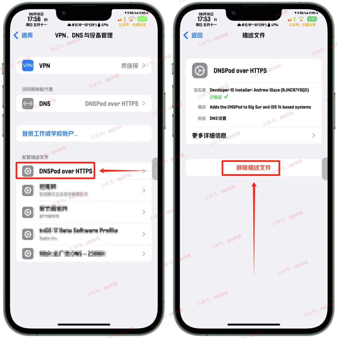 微信消息会延迟,主要原因是有时有些 DNS 服务器 对微信的消息推送解析不够快,而这个DNS 服务器是宽带运营商给你家分配的距离最近的服务器(使用蜂窝网络上网,则是由移动运营商自动分配)所以,我们通过给 iPhone手机 安装一个描述文件,将 iPhone 的 DNS 服务器解析强制改成腾讯的 DNSPod 服务,从而解决微信消息延迟的问题,最主要是这个服务是免费使用的哈~网盘下载(资源盘同步更新):