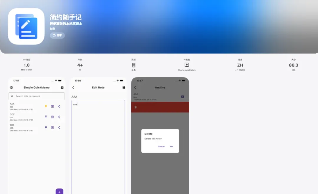 🔗 下载地址: https://apps.apple.com/cn/app/简约随手记/id6752603709