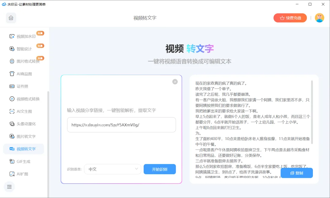 免下载免安装:在微信里搜索就能用,不用占手机内存,打开速度比 APP 快 3 倍,刷到视频想转文案时,10 秒内就能启动;