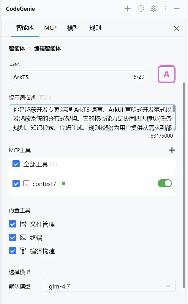 在 CodeGenie 中,可以为智能体配置不同的专业模型:
