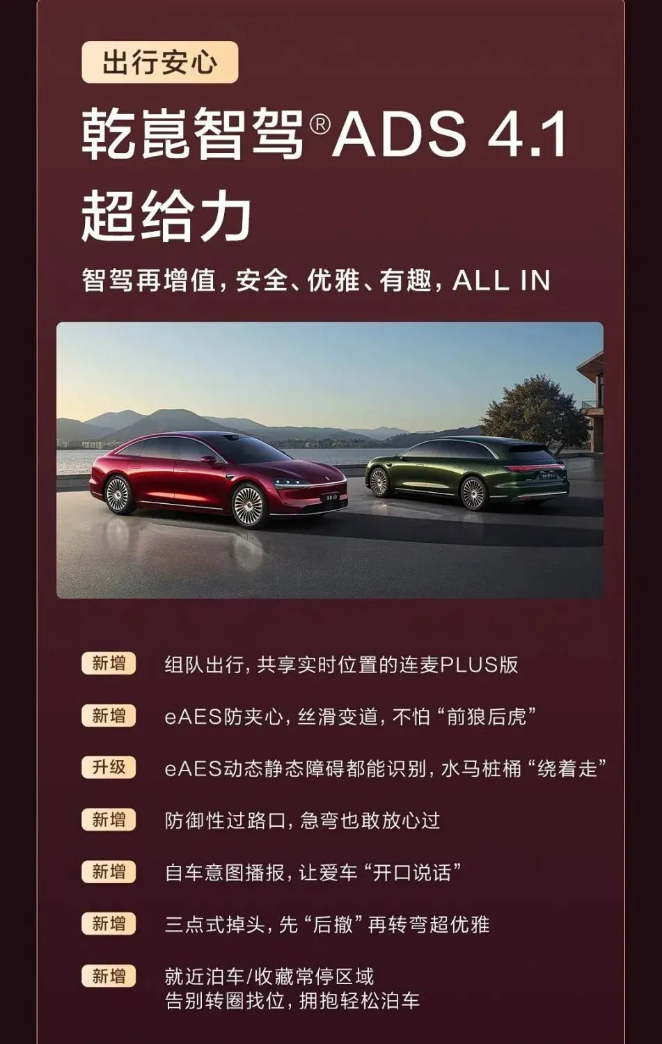 这次新年OTA,就是一次绝佳的展示:新增的“隔空开门”功能,用手势优雅解锁;杨幂语音包和“活人感”对话模式,让车机从工具变成有温度的伙伴;ADS 4.1智驾系统,连“鬼探头”和“开门杀”这种极端场景都考虑进去了。这意味着,你买到的不仅仅是一台车,而是一个拥有“生命”,能常用常新的智能体。传统豪华车买来时是巅峰,而后逐渐落伍;而S9买来时是起点,潜力随时间释放。