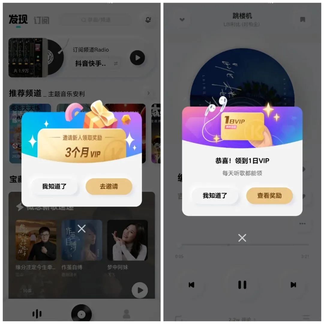 3、软件使用先用v信或Q登一下,新用户送三个月会员,邀请好友再送三个月,老用户也不用着急(都知道新版本加入了广告,且每天需要看广告才可以领会员),我在这里提供的是老版本,无任何广告,每天听歌三秒会员自动到帐