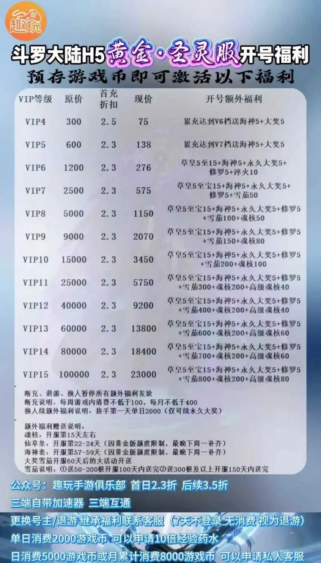 首日2.3折或者首次加币2.3折,续充3.5折