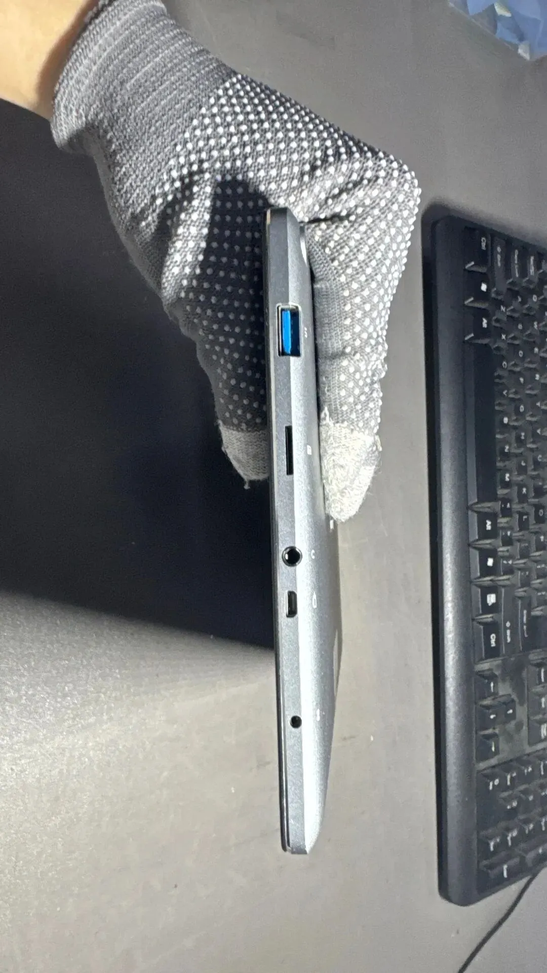 充电口有意思,可以用两种线给这平板充电,一种是平板原装的圆形充电器,插在DC充电口上。另一种是普通的Micro USB数据线,就是以前安卓手机常用的那种接口,插在对应的Micro USB口就行。两种方式都只能用5V电压慢慢充,没有快充功能。
