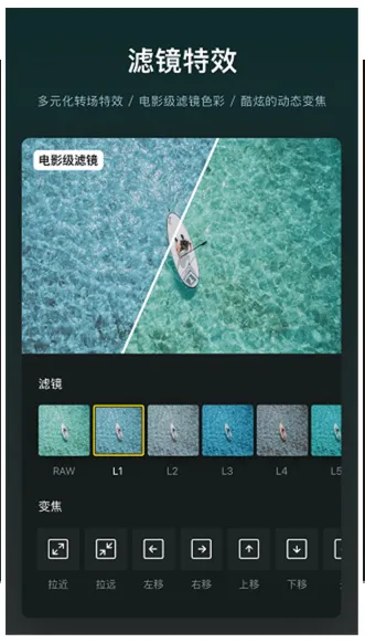 - 海量免费资源:音乐、音效、滤镜、转场、贴纸、字体全免费,不用额外花钱买素材