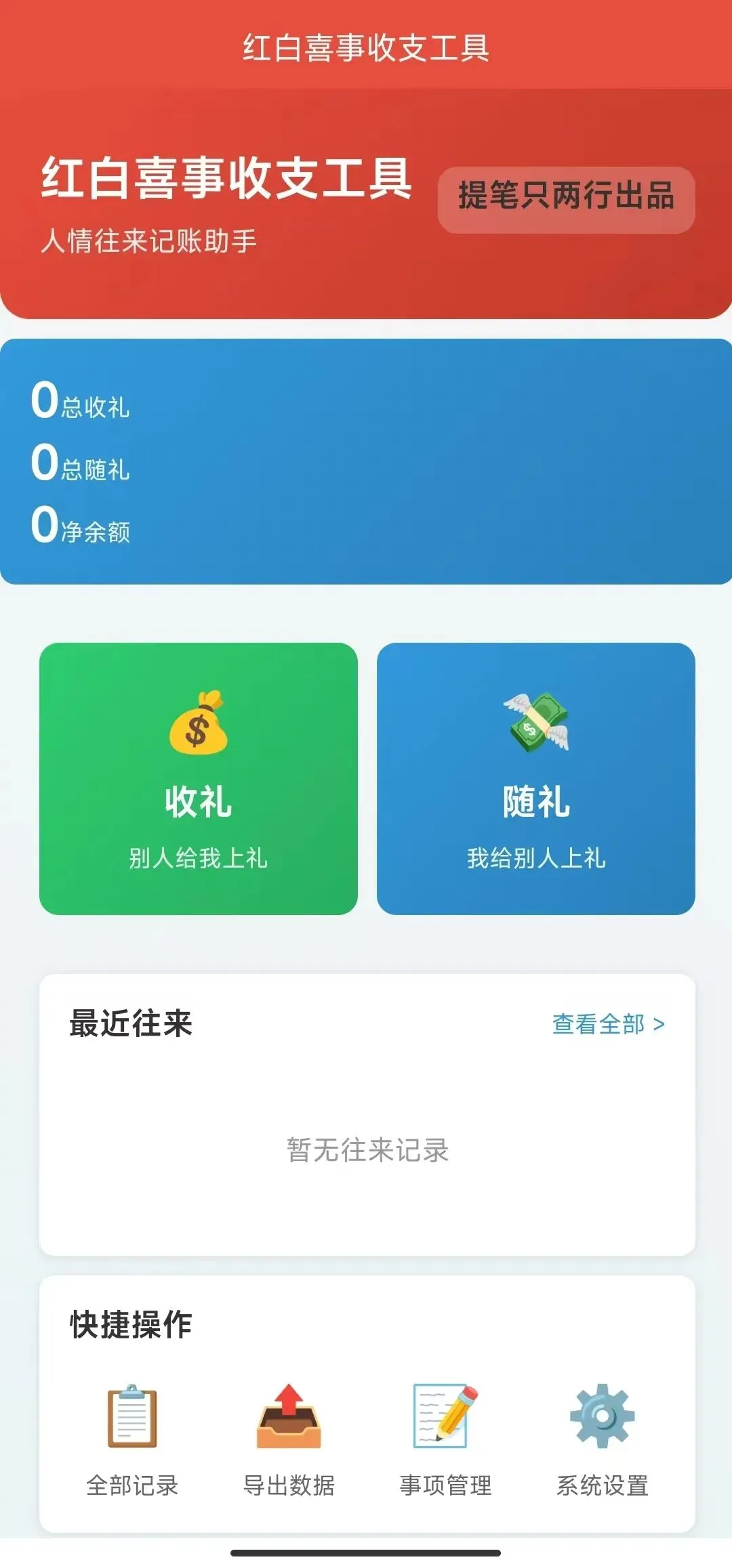 其功能只有两个,一个是收礼,一个是随礼,大家点击相应的功能,然后记录姓名、金额、事项等等即可。功能比较简单,只要上手都能学会。