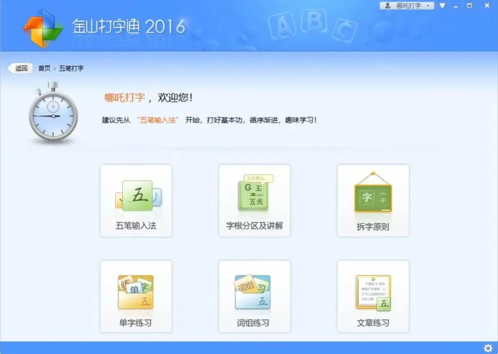 估计不少 80 后、90 后的打字启蒙就是它。它的课程像搭台阶,一级一级来:先认键盘,再练指法,再打词打句。英文、中文、五笔全安排上,分类清清楚楚。