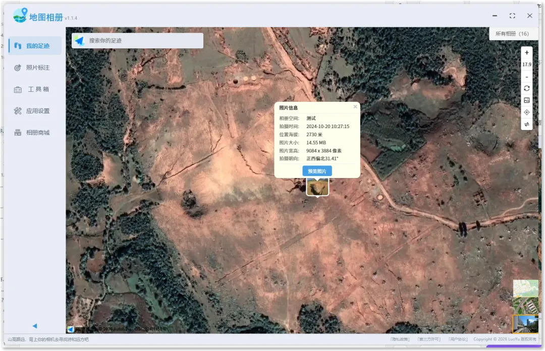 最近有开发者开发了名为地理相册的软件,专注用于地理标记、地图相册呈现、数据处理等功能的实现,对于地理相关专业来说,确实是方便太多了。