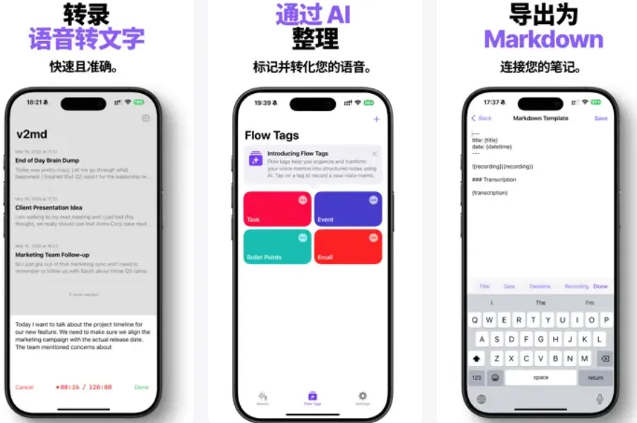 写在开头:将您的语音实时转化为格式完美的笔记,这款强大应用可让您录制思路、讲座、会议或灵感,并瞬间转换成干净利落的 Markdown 文本文件。