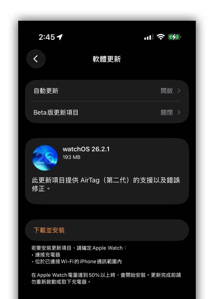 为了配合刚发布的AirTag 2,苹果在今日(1/27)凌晨也同步推出iOS 26.2.1 以及watchOS 26.2.1 小型更新,内容主要就是支援AirTag 2,并包含细节错误修正。