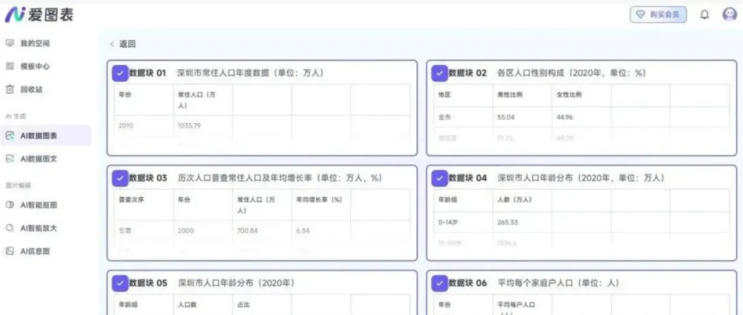 免费额度很足,注册就送200点,普通的条形图、折线图一张只消耗1点。你上传一张CSV表格,它能自动识别哪些是分类、哪些是数值,然后推荐3张候选图给你选。