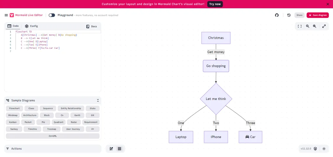 纯开源,写几行类似Markdown的代码就能渲染流程图、时序图。GitHub原生支持,你在README里直接贴代码就能显示。