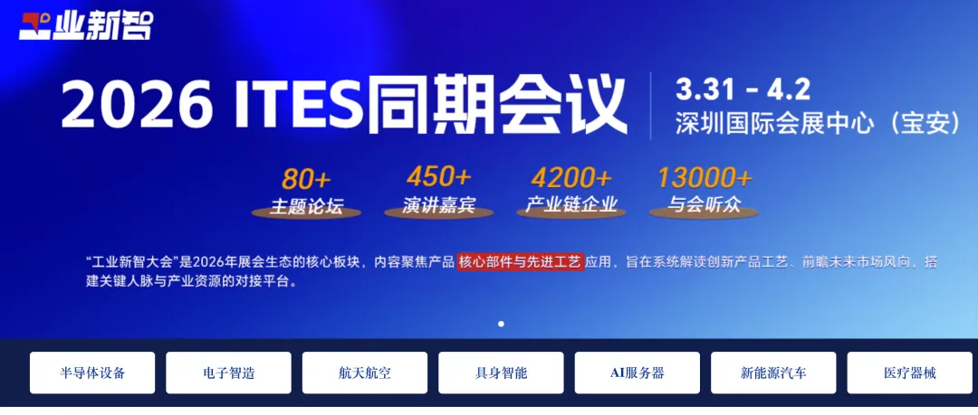 作为2026 ITES“展+会”生态的核心组成,同期系列会议聚焦更行业核心零部件及先进工艺应用,精准覆盖半导体设备、新能源汽车、AI 服务器、具身智能、电子制造、医疗器械、航空航天7大热点赛道,打造80余场高质量主题论坛。