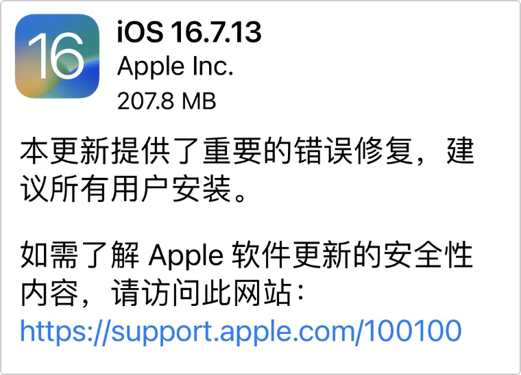 - iOS 16.7.13 适用于 iPhone 8、8 Plus 以及 iPhone X