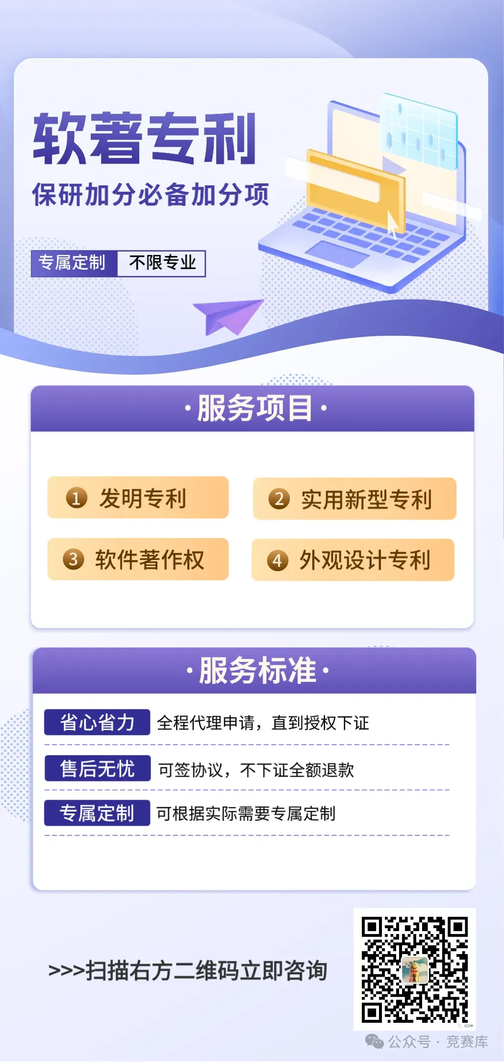 如果你的团队正在布局体育科技领域研发,这些选题可以直接作为参考喔~学长工作室已上线软件著作权和专利代理申请服务,包含软件著作权、实用新型专利、外观设计专利三种,均提供全部的申请材料,代理下证,不下证不收费,售后无忧。