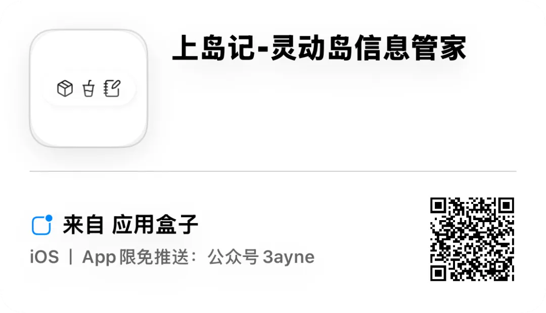应用介绍:取餐码、取件码与票券,一键显示在灵动岛。支持离线识别、锁屏展示与 Apple Watch 查看。上岛记是一款专为日常高频场景设计的灵动岛信息展示工具。支持取餐、取件、排队、票券、火车票、飞机票、笔记与二维码等内容的离线识别与集中展示,让关键信息始终可见。