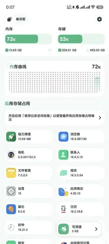 除了清理垃圾,这软件里还藏着一个我觉得挺有意思的小彩蛋——悬浮窗监测。