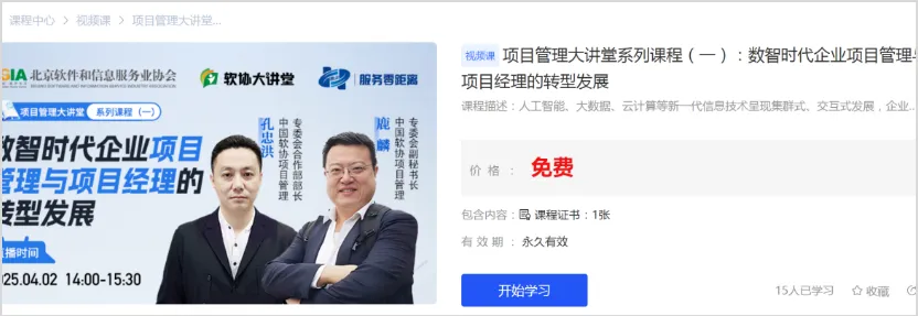 软件人才继续教育平台(以下简称“平台”)是北京软件和信息服务业协会依托市人社局北京市专业技术人员继续教育平台和市网信办北京市全民数字素养与技能培训基地打造的专业性的人才教育平台。平台为会员提供在线学习、个性选课、证书查询等一体化人才继续教育培训服务。涵盖知识产权、项目管理、人力法务、财税政策、数字技术、金融科技等10余个课程系列。