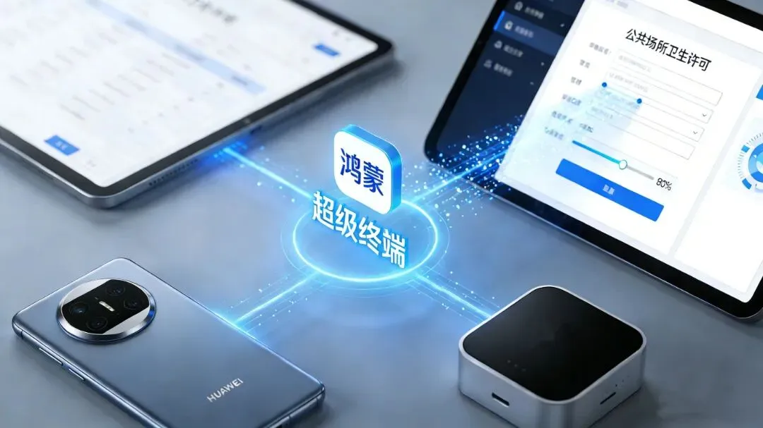 依托鸿蒙端云协同安全架构与可信认证机制,通过政务VPN安全通道实现业务系统实时数据交互。工作人员携带鸿蒙移动终端主动上门,现场5家企业通过设备“碰一碰”端侧共享,安全、便捷地完成商事登记变更、公共场所卫生许可(延续)等事项申请材料提交,实现了从“来回跑”到“指尖碰”的智慧跃升。