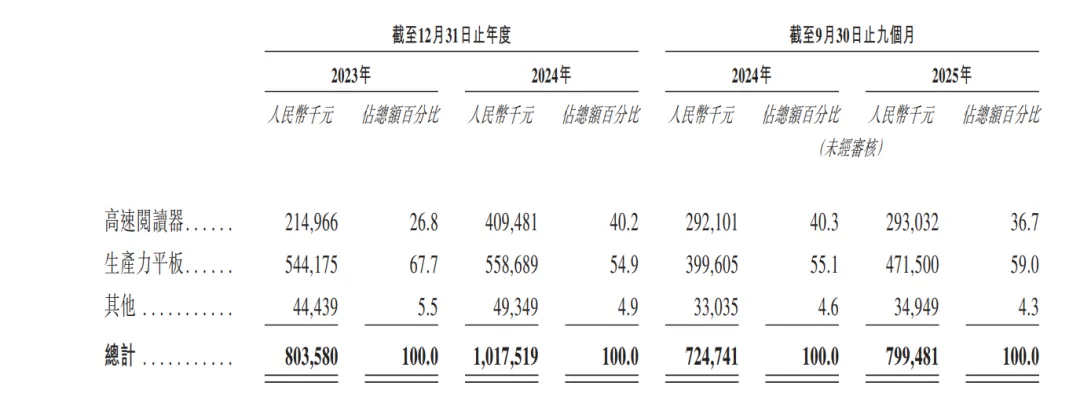 量价方面,文石的高速阅读器设备销量于 2023 年、2024 年以及 2025 年前九个月分别为 25.5 万台、38.4 万台及 26.8 万台,平均售价分别为 844 元、1066 元、1095 元。