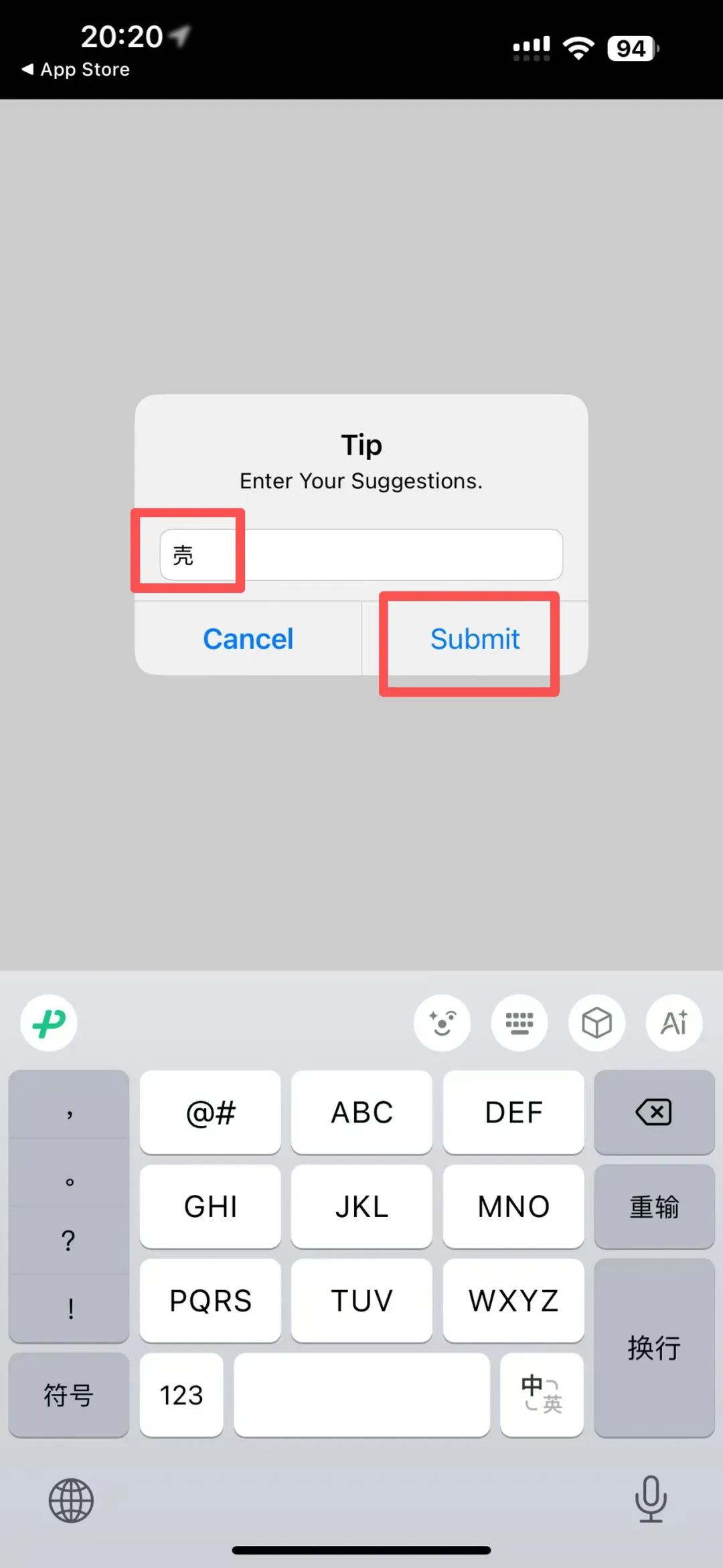 打开软件-等一会出现输入框-输入“壳”-点击Submit-软件一会儿会出现重启提示后闪退,清理后台重启打开软件即可自动变身。