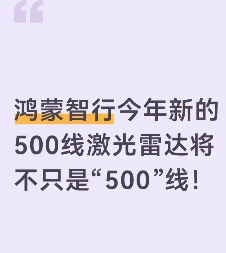 鸿蒙智行还没公布具体时间,但“不止500线”四个字,已经让整个圈子炸锅。2026年,这技术落地后,智驾赛道怕是要重新洗牌。那些还在用256线的车,可能连朋友圈都发不出去——“老款了,别提了”。
