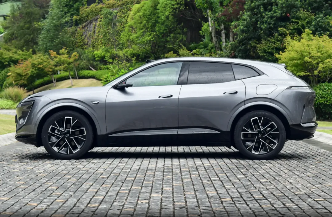 而在车身侧面,阿维塔07的车身比例是典型的轿跑SUV风格,而且修长的车头也会让整车显得更有档次感,搭配实拍图中的21英寸轮毂,更进一步的提升了整车的力量感。而在其它配置上,阿维塔07还给到无框车门以及前排多层隔音玻璃。