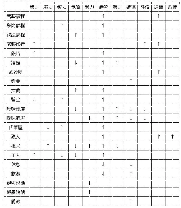 国王:“嗯,你说得对,幼童的教育就是国家的基础,这事的重要性并不比国家军政的重要性低。你可以说是国家的英雄……希望你能够尽力为天下万民培育出真正有用的人才。” ○○:“不敢当,国王言重了。”因此,年轻的勇者○○就此隐退了,国王赐给他一座宽广的家园,以及黄金500两的赏赐,作为培育儿童的教育基金……数日后,一位在战争中失去双亲的小女孩被勇者○○收养,她的名字是XX,今年春天刚满十岁……影响表: