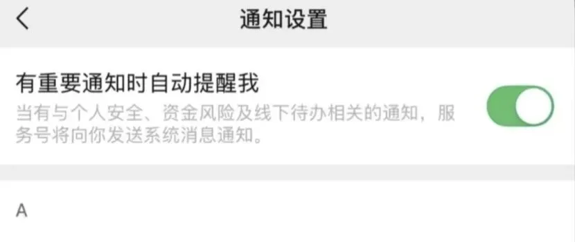 现在可以在服务号预览页点击右上角图标,进入界面后选择「通知设置」,顶部新增选项「有重要通知时自动提醒我」,打开之后,会有一个提示。