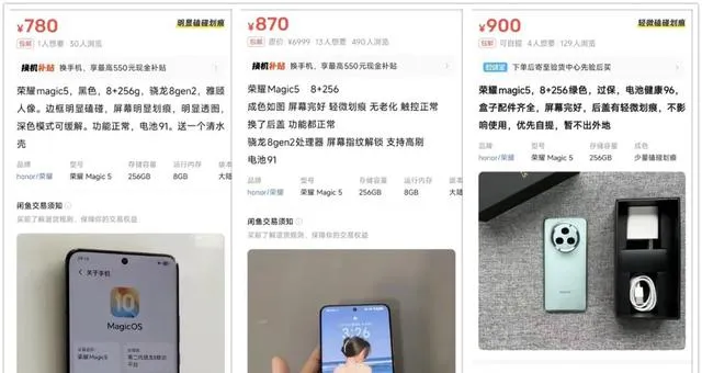 就在这个节骨眼上,测评君偶然刷到了荣耀Magic5二手价格的最新行情,直接被震惊到:780元!没错,去年还高高在上的旗舰机,现在居然跌破千元,甚至比不少中端新机还便宜。你敢信?这价格一出,小编简直欣喜若狂,心跳都快跟不上了!要知道,这款曾经4999元顶配、发布会现场普天同庆的荣耀Magic5,如今在二手市场已然成了“真香机皇”,还不到一顿高档火锅的钱!这不是抢手机,是捡漏神器啊!