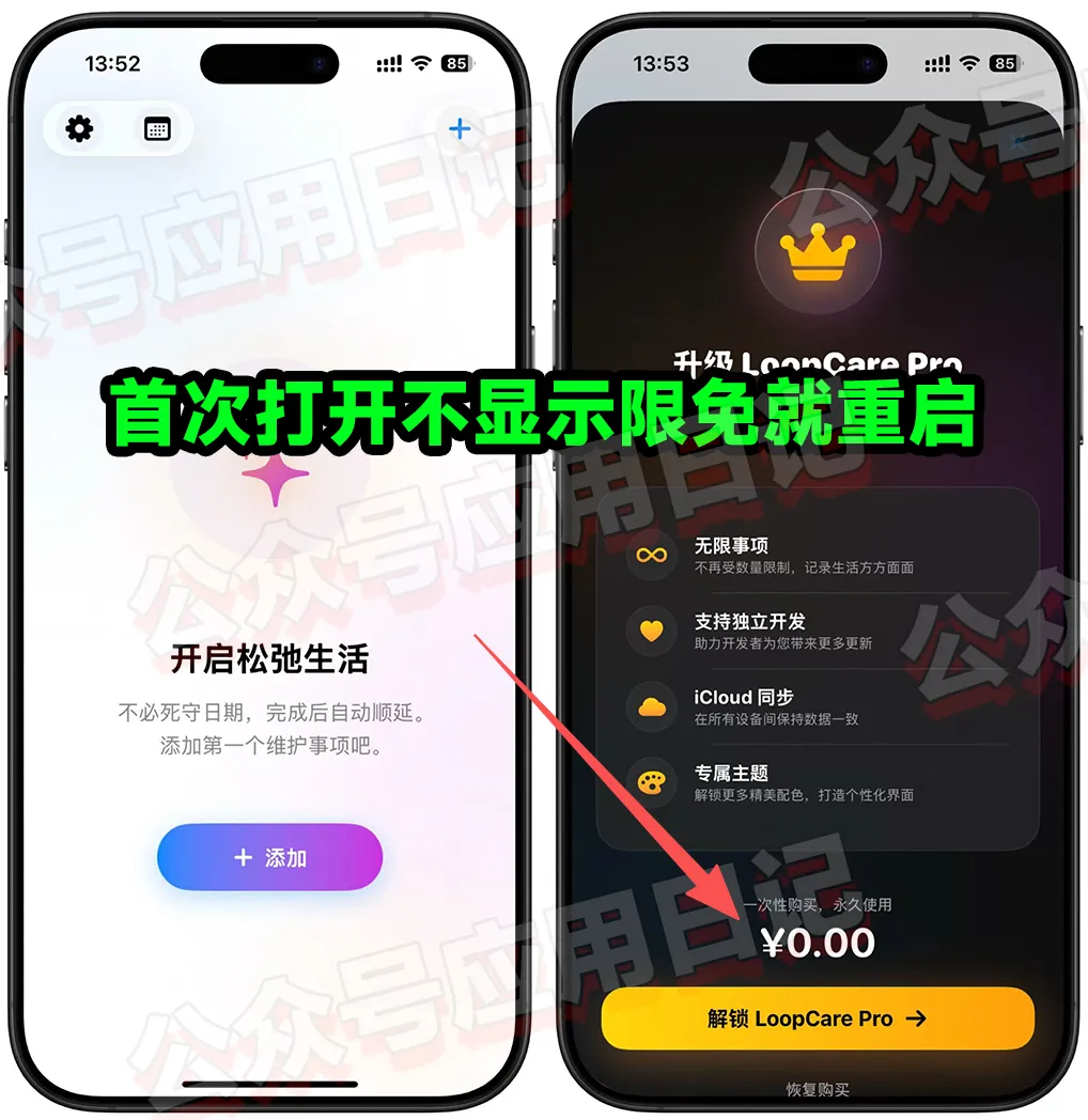 App Store 发现了一款习惯培养和事项提醒软件,目前可以免费获取它的终身订阅,打开软件从设置进入内购,一次性显示0即可免费获取,首次打开不显示就重启!