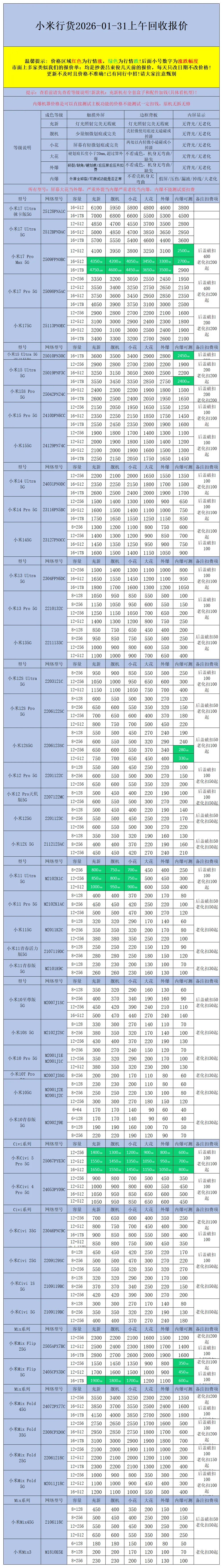 >【安卓】二手机回收报价2026-01-31