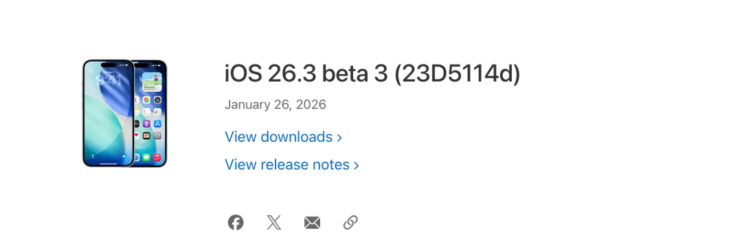 iOS 26.3 Public Beta 3(公测版)来了。
