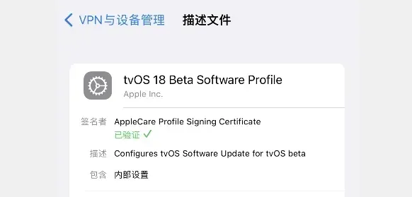- 进入手机设置 - 通用 - 设备管理,找到 tvOS26 描述文件
