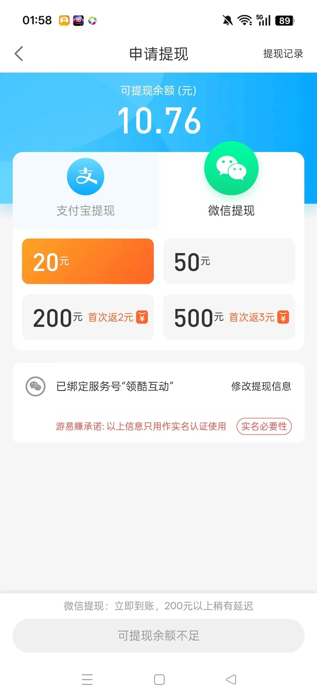 打开指定小程序,刷广告+短视频,单条奖励≈0.5元,每天300条左右,系统手动提现结算,红包秒到微信。