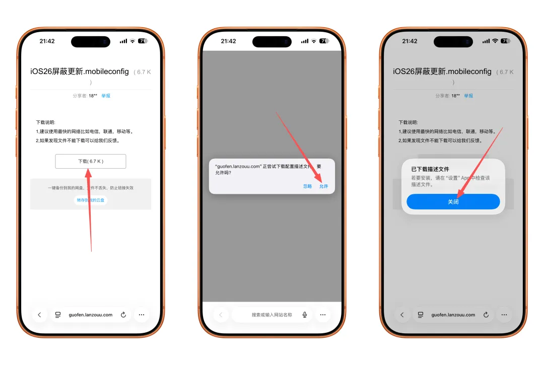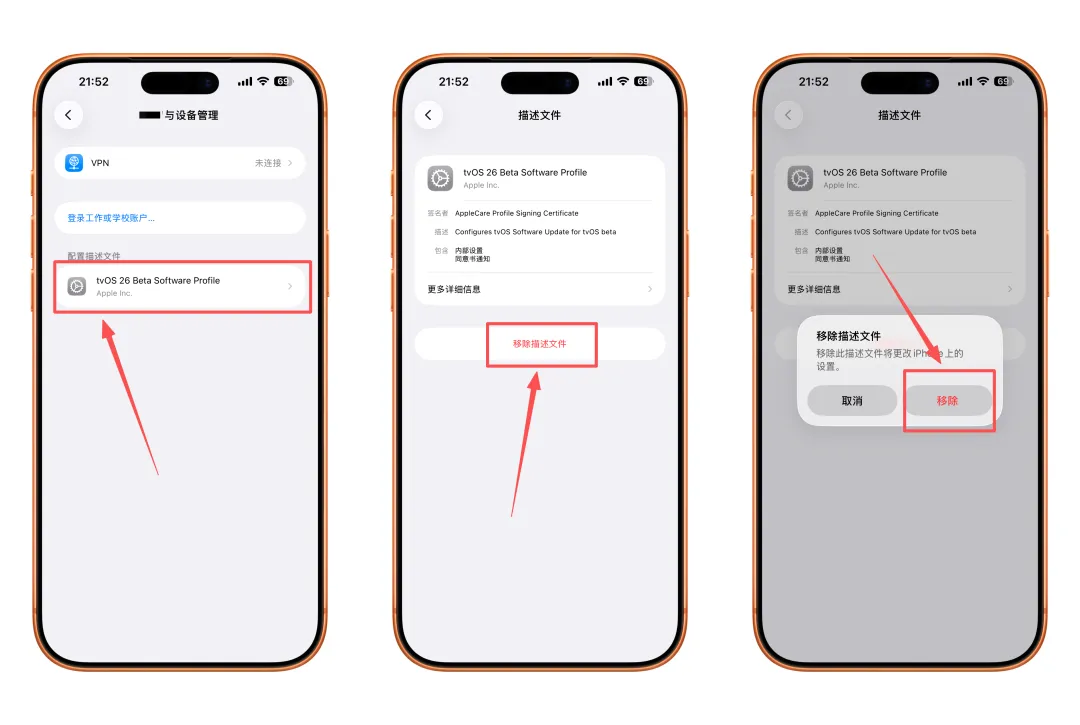 大家好呀,刚刚苹果全新的「tvos 26描述文件」终于发布了,目前有在屏蔽iOS系统更新的小伙伴应该都知道这个,之前的「tvos 18描述文件」将在今天(2026年1月31日)失效,更换之后,屏蔽更新有效期延长至2027年1月31日。安装此iOS描述文件,可以有效的屏蔽系统更新提示,可去除设置图标右上角的红点标识,设置页面内的更新提示等,支持最新的iOS26系统。1,首先如果你的设备已经安装了之前的「tvos 18描述文件」,需要先删除掉,否则新的会提示安装失败3,复制获取到的链接在苹果自带的Safari浏览器中打开(其他浏览器不行🙅♀️)4,返回手机设置>>通用>>V某N与设备管理>>选择「tvos 26」,根据提示一步步操作安装即可注意:如果需要升级系统,删除「tvos 26描述文件」即可路径:设置>>通用>>设备管理找到「tvos 26」>>选择并移除描述文件>>随即重启你的设备即可恢复正常更新,对你的设备毫无影响!