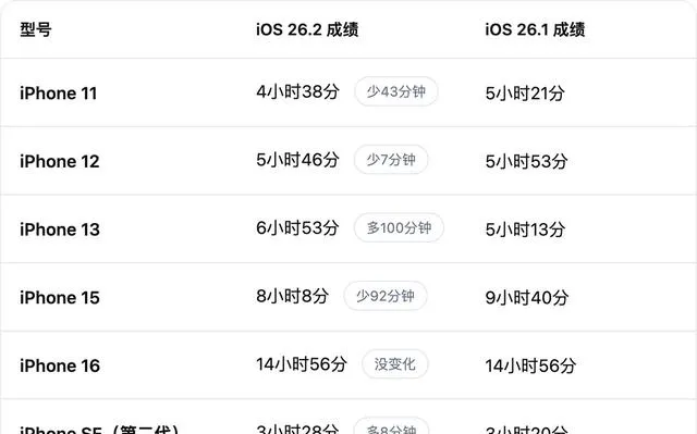 最近,测评君在身边的苹果用户群体中,发现了一个十分“魔幻”的现象:每当苹果推送新iOS版本,朋友圈、微信群、各大论坛里,总有人一边摩拳擦掌跃跃欲试,一边又提心吊胆怕升级后“续航崩、信号差、系统变卡”。尤其这次iOS 26.2刚刚推送,足足有七款iPhone机型被拉进了实测名单——你敢说自己没点犹豫?其实,大家最关心的问题,归根结底还是一句话:升了iOS 26.2,续航到底有没有变化?真的会变好吗?今天,测评君就带着大家,把这七款iPhone的续航成绩和背后的真相都掰开揉碎,聊个明明白白!