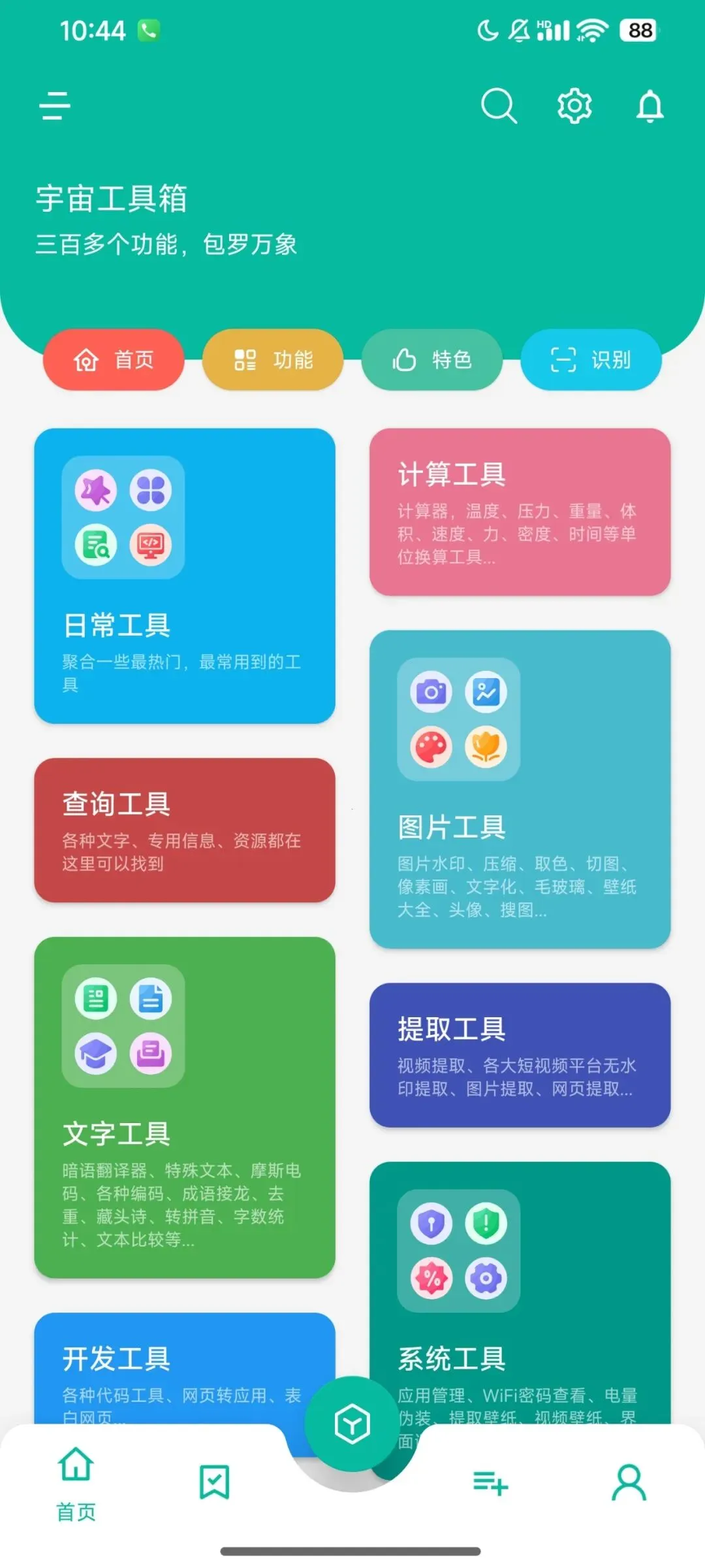 这款宇宙工具箱,绝对是近期见过的最良心的整合类神器了,已完美解锁,大家可以安心享用。虽然它囊括了三百多个功能,但体积控制得很好,不会拖慢手机速度。对于那些不想手机里装满垃圾软件的朋友,这一个APP足以抵得上原本的一堆APP了,建议大家低调使用,且用且珍惜,毕竟这种好东西,指不定哪天就没了。